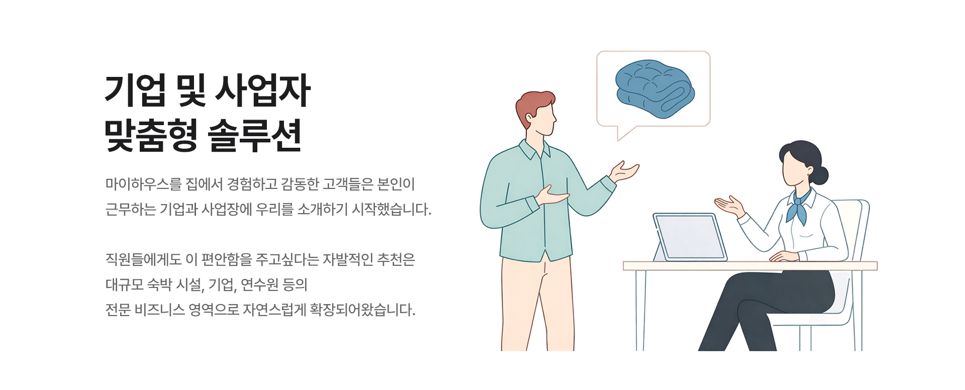 기업·사업자비즈니스 니즈를 반영한 수준 높고 차별화된높은 퀄리티의 침구를 사업자들에게 공급